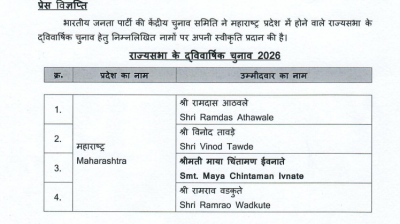 भाजपा ने अपने चार और राज्यसभा उम्मीदवारों के नामों का...