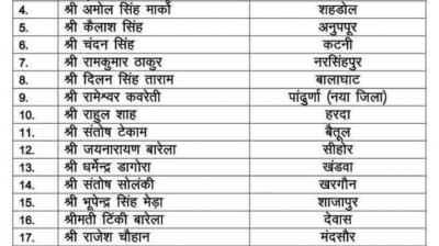 MP - अनुसूचित जनजाति मोर्चे के जिला अध्यक्षों के नामों...