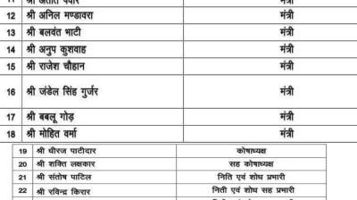 MP - ओबीसी मोर्चे के प्रदेश पदाधिकारियों के नामों की...
