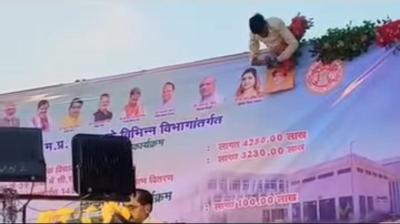 शिवपुरी में सांदीपनि आश्रम के लोकार्पण और 39 वार्डों के विकास कार्यो के शिलान्यास कार्यक्रम का आयोजकों ने बैनर पर नहीं लगाया नगर...