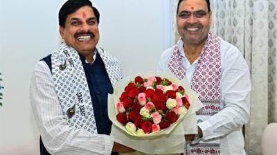 मुख्यमंत्री डॉ. यादव ने राजस्थान के मुख्यमंत्री श्री शर्मा से की भेंट