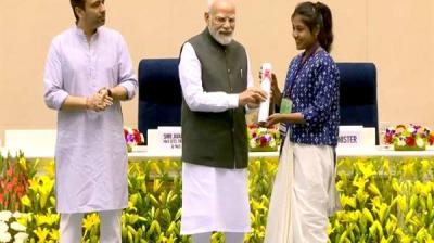 प्रधानमंत्री श्री मोदी ने बैतूल की आईटीआई प्रशिक्षार्थी कु. तावड़े को किया सम्मानित