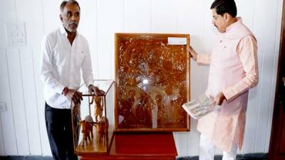 मुख्यमंत्री डॉ. यादव ने काष्ठ मूर्ति कलाकार श्री विश्वकर्मा को पुरस्कार स्वरूप में एक लाख रूपये दिये जाने की घोषणा
