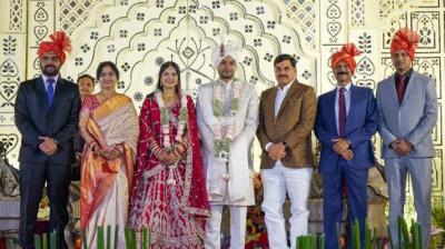 मुख्यमंत्री डॉ. यादव डीजीपी श्री मकवाना की सुपुत्री के विवाह समारोह में शामिल हुए वर-वधु को दिया आशीर्वाद
