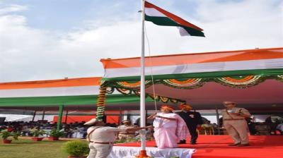 राज्यमंत्री श्रीमती राधा सिंह ने ध्वजारोहण करके ली परेड की सलामी