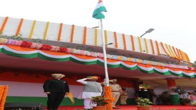 राजस्व मंत्री ने किया ध्वजारोहण ली परेड की सलामी