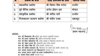 अभी-अभी : भाजपा प्रदेश अध्यक्ष ने की चार प्रदेश संयोजकों की नियुक्ति