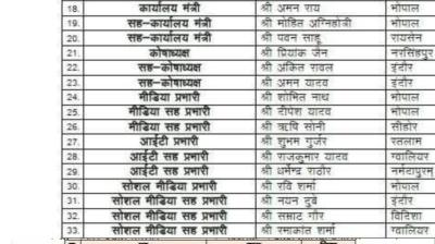 MP - युवा मोर्चा के प्रदेश पदाधिकारियों के नामों की घोषणा, देखिए पूरी सूची