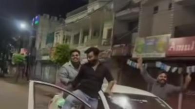 इस वीडियो में कुछ युवक कार के गेट पर लटककर तेज...