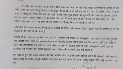 प्रतिरूप द्वारा छल का अपराध मामले में भोपाल भाजपा जिला अध्यक्ष रविन्द्र यति ने कोलार थाने में दिया आवेदन