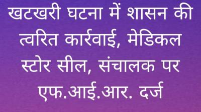 खटखरी घटना में शासन की त्वरित कार्रवाई, मेडिकल स्टोर सील, संचालक पर एफ.आई.आर. दर्ज