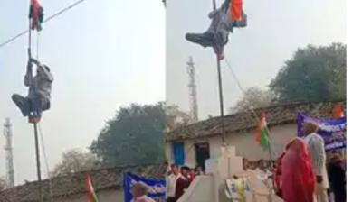 ध्वजारोहण करने के लिए करनी पड़ी अच्छी खासी मस्सकत,खंबे पर चढ़कर करना पड़ा झंडावंदन