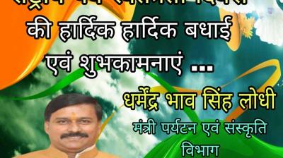राज्य मंत्री श्री लोधी ने प्रदेशवासियों को दी स्वतंत्रता दिवस की शुभकामनाएँ