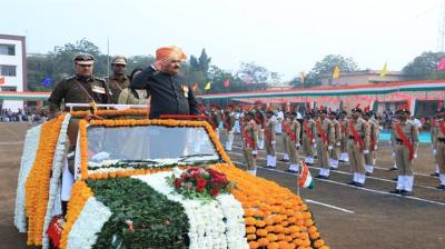 गणतंत्र दिवस परेड की सलामी प्रभारी मंत्री डॉ. गौतम टेटवाल द्वारा ली गई