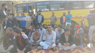 ड्राइवर को बंधक बनाकर बेरहमी से पीटा गया, धरने पर बैठे ग्रामीण