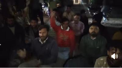 विहिप और बजरंग दल के कार्यकर्ताओं ने थाना के सामने किया प्रदर्शन, सड़क पर बैठ किया हनुमान चालीसा का पाठ