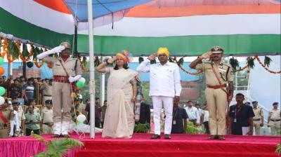 किसान कल्याण तथा कृषि विकास मंत्री ने ध्वजारोहण कर परेड की सलामी ली