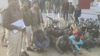 पेट्रोल पंप में डकैती की वारदात को अंजाम देने के पहले ही 10 बदमाश गिरफ्तार ,तलवार और पांच महंगी बाइक जब्त
