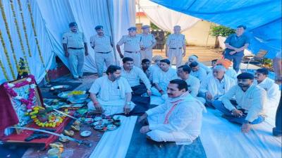 विजयदशमी के अवसर पर कृषि मंत्री श्री कंषाना ने पुलिस लाइन मुरैना पहुंचकर शस्त्रों का पूजन किया