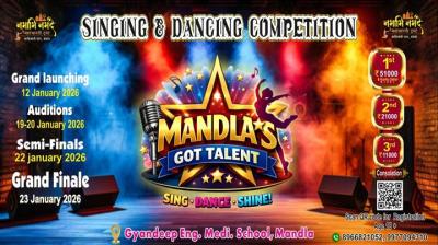 मंडला जिले की छुपी हुई प्रतिभाओं को मंच देने के उद्देश्य से आयोजित ‘मंडला गॉट टैलेंट’ कार्यक्रम के ऑडिशन की शुरुआत हो गई है। ऑडिशन के पहले दिन गायन विधा में कुल 65 प्रतिभागियों...