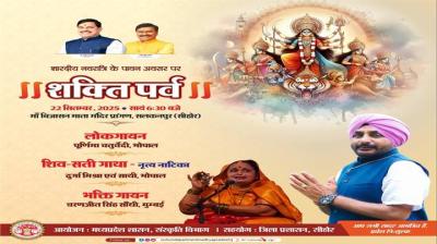 सीहोर l शासन के निर्देशानुसार संस्कृति विभाग द्वारा शारदीय नवरात्रि के पावन अवसर पर 22 सितंबर 2025 को शाम 06:30 बजे सलकनपुर मां विजयासन देवी धाम प्रांगण में “शक्ति पर्व” का आयोजन किया...