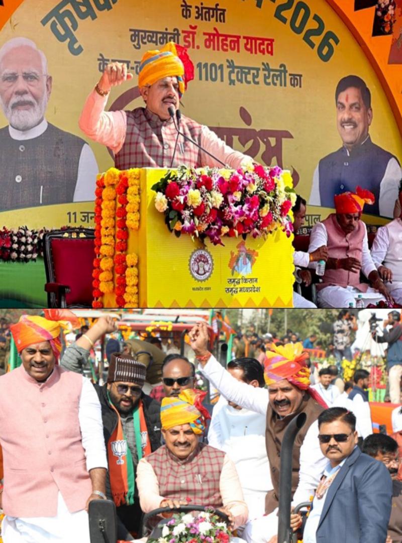 भोपाल l मुख्यमंत्री डॉ. मोहन यादव ने राजधानी भोपाल से रविवार को कृषक कल्याण वर्ष 2026 का भव्य एवं गरिमापूर्ण शुभारंभ किया। उन्होंने शुभारंभ अवसर पर किसानों की ऐतिहासिक 1101 ट्रेक्टरों की रैली का नेतृत्व किया। विशाल संख्या में ट्रैक्टरों की अनुशासित सहभागिता ने कार्यक्रम को ऐतिहासिक स्वरूप प्रदान किया। ट्रेक्टर रैली में किसानों के उत्साह को देखकर मुख्यमंत्री डॉ. यादव ने कहा कि यह ट्रैक्टर रैली केवल एक आयोजन नहीं, बल्कि किसानों की एकजुटता, आत्मविश्वास और प्रदेश सरकार की किसान-हितैषी सोच का सशक्त प्रतीक है। यह आयोजन इस बात का संकेत है कि राज्य सरकार कृषि को सर्वोच्च प्राथमिकता देते हुए किसानों के हित में निरंतर और ठोस कदम उठाने के लिए प्रतिबद्ध है।