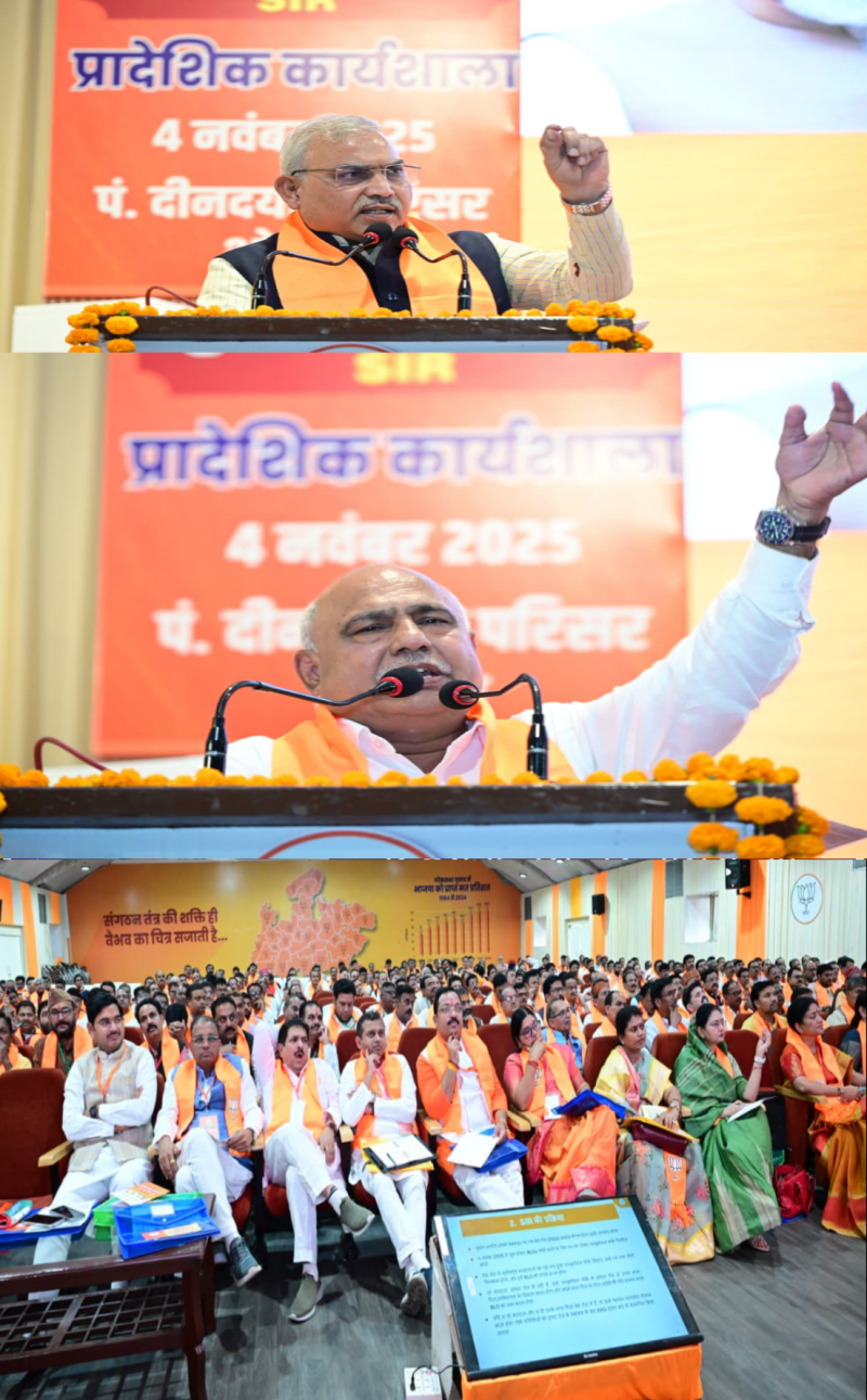 भाजपा के राष्ट्रीय सह संगठन महामंत्री श्री शिवप्रकाश जी ने कार्यशाला को संबोधित करते हुए कहा कि प्रत्येक कार्यकर्ता को काम शुरू करने से पहले एसआईआर के संबंध में जानकारी होना जरूरी है। हमें यह समझ लेना चाहिए कि यह क्यों हो रहा है, कौन कर रहा है, कहां हो रहा है, कैसे होगा और कब होगा। उन्होंने कहा कि निर्वाचन आयोग ने एसआईआर का उद्देश्य बताते हुए कहा है कि जिस व्यक्ति को मतदाता बनना चाहिए, वह छूट न जाए और जिस व्यक्ति को मतदाता नहीं बनना चाहिए, वह सूची में शामिल न हो जाए। बिहार में हुए एसआईआर ने निर्वाचन आयोग के इस उद्देश्य को प्रमाणित भी कर दिया है, जहां 34 लाख नाम मतदाता सूची से हटाए गए हैं। श्री शिवप्रकाश जी ने कहा कि सामान्यतः मतदाता नौकरी या रोजगार के सिलसिले में एक शहर से दूसरे शहर जाते रहते हैं और उनके नाम एक से अधिक स्थानों की मतदाता सूची में जुड़ जाते हैं। इसके अलावा कई मतदाताओं की मृत्यु हो जाती है। सबसे ज्यादा महत्वपूर्ण यह है कि सीमावर्ती राज्यों में विदेशियों की घुसपैठ हो रही है और ऐसे अनेक एजेंट सक्रिय हैं, जो पैसे लेकर उन्हें सभी जरूरी दस्तावेज उपलब्ध करा देते हैं। ऐसे मतदाताओं की पहचान के लिए एसआईआर जरूरी है। उन्होंने कहा कि एसआईआर की प्रक्रिया पूरी तरह संवैधानिक है और हमारे संविधान में इसके लिए प्रावधान किया गया है।