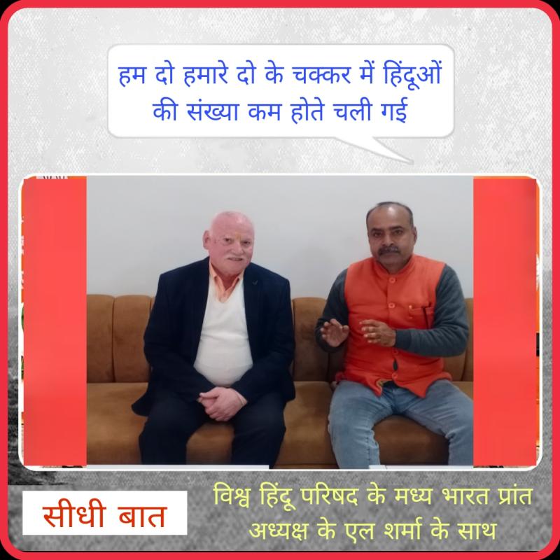 भोपाल l विश्व हिंदू परिषद के मध्य भारत प्रांत अध्यक्ष के. एल. शर्मा एक सुलझे हुए व्यक्ति हैं जो समाजसेवी के रूप में राजधानी में अपनी एक अलग पहचान रखते हैं। सहज-सरल होते हुए भी के. एल. शर्मा अपने बेवाक बयानों के लिए भी जाने जाते हैं। उनका मानना है कि भारत युद्ध का नहीं बल्कि बुद्ध का देश है और हम शांति के मार्ग पर चलकर सम्पूर्ण विश्व के कल्याण की कामना करते हैं लेकिन आवश्यकता पड़ने पर शस्त्र उठाना भी जानते हैं। तेजेंद्र भार्गव ने विश्व हिंदू परिषद के मध्य भारत प्रांत अध्यक्ष के. एल. शर्मा से लंबी चर्चा की। प्रस्तुत है उस साक्षात्कार के मुख्य अंश....