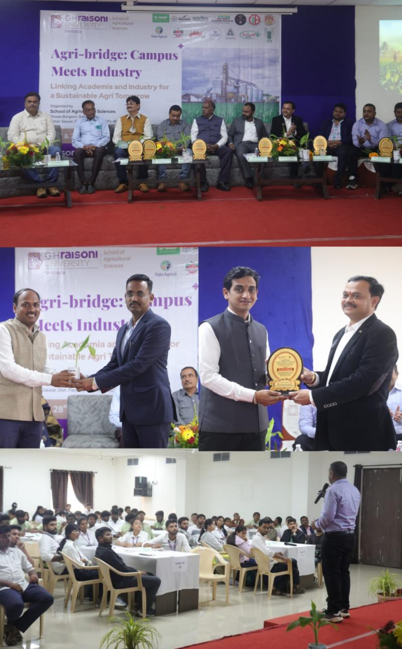 सायखेडा़ l जी. एच. रायसोनी विश्वविद्यालय, सायखेडा के कृषि विज्ञान स्कूल में 27 और 28 नवम्बर 2025 को दो दिवसीय “एग्री-ब्रिज: कैंपस मीट्स इंडस्ट्री” कार्यक्रम का सफल आयोजन किया गया। कार्यक्रम का उद्देश्य कृषि क्षेत्र में नवाचार, उद्योग–अकादमिक सहयोग को मजबूती प्रदान करना तथा शाश्वत कृषि विकास को प्रोत्साहित करना रहा।