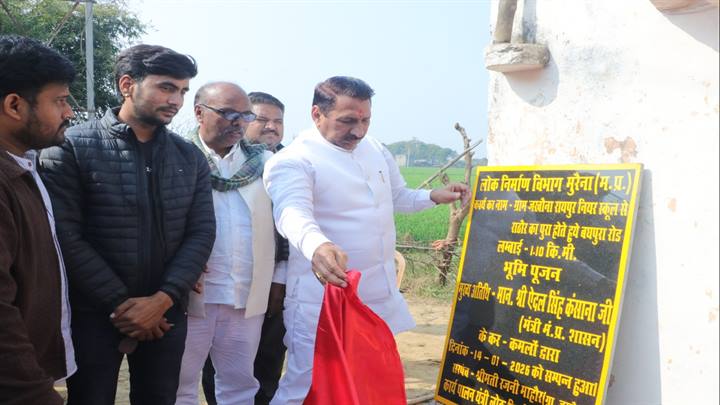 मुरैना / प्रदेश के किसान कल्याण एवं कृषि विकास मंत्री श्री ऐदल सिंह कंषाना ने कहा है कि प्रदेश सरकार के लिए सड़क, बिजली और पानी सर्वोच्च प्राथमिकताएं हैं सरकार का संकल्प है कि कोई भी गांव विकास से अछूता न रहे। यह विचार उन्होंने बुधवार को सुमावली विधानसभा क्षेत्र के अंतर्गत ग्राम जखौना रायपुर में स्कूल परिसर के पास से राठौर का पुरा होते हुए बघपुरा रोड तक 1 करोड़ 38 लाख 59 हजार रुपये की लागत से बनने वाली 1.10 किलोमीटर लंबी सड़क के भूमिपूजन कार्यक्रम के दौरान व्यक्त किए। इस अवसर पर ग्राम पंचायत की सरपंच श्रीमती रजनी माहौर, समाजसेवी श्री बालकृष्ण सांटा सहित अन्य जनप्रतिनिधि, गणमान्य नागरिक तथा बड़ी संख्या में ग्रामीण महिला-पुरुष उपस्थित रहे। कृषि मंत्री श्री कंषाना ने कहा कि सरकार विकास के लिए पूर्णतः प्रतिबद्ध है और विकास कार्यों में किसी प्रकार का भेदभाव नहीं किया जाएगा। उन्होंने कहा कि जब किसान खुशहाल होगा, तभी प्रदेश और देश खुशहाल होंगे। किसान की फसल जब सुरक्षित और बेदाग उसके घर तक पहुँचेगी, तब उसके परिवार में खुशहाली आएगी। कृषि मंत्री होने के नाते मैं किसानों के उन्नतशील विकास के लिए सदैव तत्पर रहूँगा। उन्होंने कहा कि आने वाले समय में विकास कार्य और अधिक गति पकड़ेंगे, जिसके लिए सभी को सहयोग करना होगा। मंत्री ने यह भी कहा कि यदि ग्रामीणों को किसी प्रकार की समस्या है तो उसे प्राथमिकता के साथ मुख्यमंत्री के समक्ष रखा जाएगा। पंचायत क्षेत्र में यदि किसी प्रकार की कमी हो तो उसे लिखित रूप में प्रस्तुत करने का आग्रह भी उन्होंने किया। कार्यक्रम के दौरान ग्रामीणों द्वारा श्मशान निर्माण की मांग रखी गई, जिस पर मंत्री श्री कंषाना ने मौके पर ही श्मशान निर्माण कराने का आश्वासन दिया। उन्होंने कहा कि सड़क निर्माण से न केवल ग्रामवासियों को बेहतर सुविधाएँ मिलेंगी, बल्कि आवागमन भी सुगम होगा। प्रदेश सरकार ग्रामीण क्षेत्रों के समग्र विकास के लिए निरंतर प्रयासरत है और भविष्य में ग्राम पंचायतों में और अधिक जनहितकारी कार्य कराए जाएंगे। इसके पश्चात कृषि मंत्री श्री कंषाना ने सड़क दुर्घटना में घायल श्री लाल सिंह, पुत्र श्री किशोर सिंह, के निवास पर पहुँचकर उनका कुशलक्षेम जाना तथा विधायक निधि से सहायता राशि स्वीकृत कराने का आश्वासन दिया।