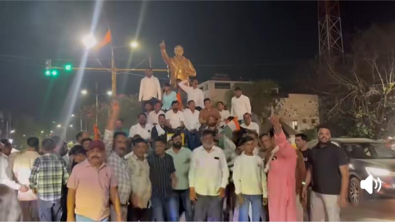 जिलाध्यक्ष के खिलाफ FIR : बाबा साहब की प्रतिमा के सामने धरना और प्रदर्शन जारी