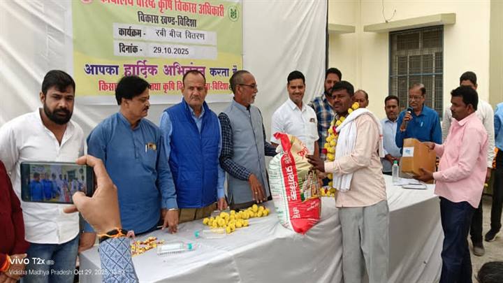 विदिशा l वरिष्ठ कृषि विकास अधिकारी कार्यालय करैया खेड़ा रोड, विदिशा में आज रबी बीज वितरण कार्यक्रम का शुभारंभ किया गया। जिसमें मुख्य अतिथि विदिशा विधायक श्री मुकेश टंडन, जनपद अध्यक्ष श्री वीर सिंह रघुवंशी तथा जिला कृषि सभापति श्री धनराज सिंह सहित विदिशा ब्लॉक की कृषि स्थाई समिति के समस्त जनपद सदस्यगण मौजूद रहे।