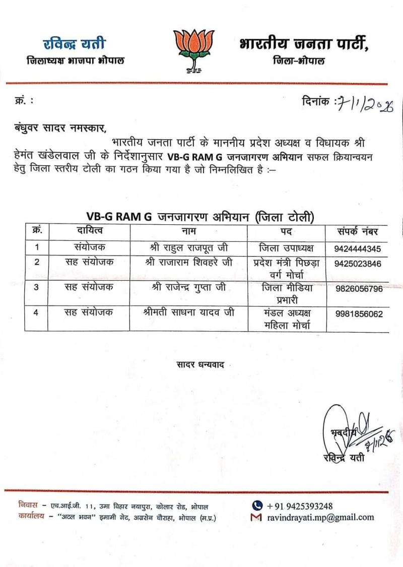 भोपाल l उपरोक्त सभी नेताओं को बड़ी जिम्मेदारी मिलने पर उनके मित्रों, शुभ चिंतको एवं पार्टी कार्यकर्ताओं द्वारा बधाई एवं शुभकामनाएं दी जा रही है।