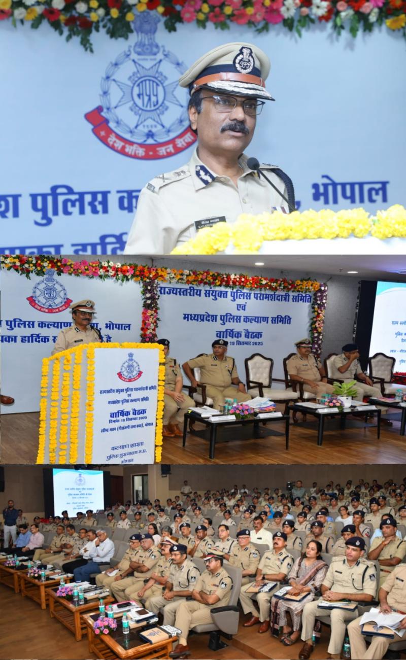 भोपाल । राज्यस्तरीय संयुक्त पुलिस परामर्शदात्री समिति एवं पुलिस कल्याण समिति की वार्षिक बैठक पुलिस महानिदेशक श्री कैलाश मकवाणा की अध्यक्षता में रविन्द्र भवन सभागर भोपाल में सम्पन्न हुई। इस बैठक में प्रदेशभर से आए वरिष्ठ पुलिस अधिकारी, समिति के सदस्य तथा विभिन्न इकाइयों एवं निकायों से जुड़े प्रतिनिधिगण सम्मिलित रहे।