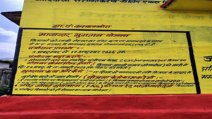 ग्रामों में दीवार लेखन कर भावांतर योजना की जानकारी की जा रही प्रदर्शित