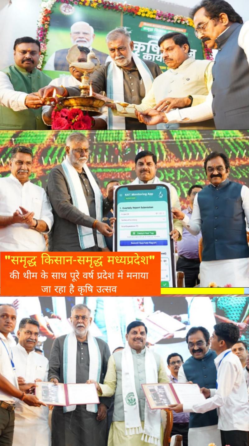 मुख्यमंत्री डॉ. यादव ने कहा कि कृषि कल्याण वर्ष में हमें और आगे बढ़ना है। प्रदेश में विकास की अपार संभावनाएं हैं। हमारे मेहनतकश किसानों ने प्रदेश को दलहन उत्पादन में शीर्ष स्थान दिलवाया, यह हमारे लिए गर्व का विषय है। अब हम तिलहन और अन्न सहित हर क्षेत्र में तेजी से आगे बढ़ रहे हैं। प्रदेश के किसान तीसरी फसल भी ले रहे हैं। कृषि उत्पादन बढ़ाने के लिए परंपरागत बीजों के स्थान पर उन्नत किस्म के बीज किसानों को उपलब्ध कराये जाएंगे। इससे हमारी कृषि उत्पादन क्षमता कई गुना बढ़ जाएगी। राज्य सरकार पशुपालन, उद्यानिकी, खाद्य प्रसंस्करण, आधुनिक यंत्र सभी को साथ जोड़कर किसानों की आय दोगुना करने के संकल्प के साथ कार्य कर रही है।