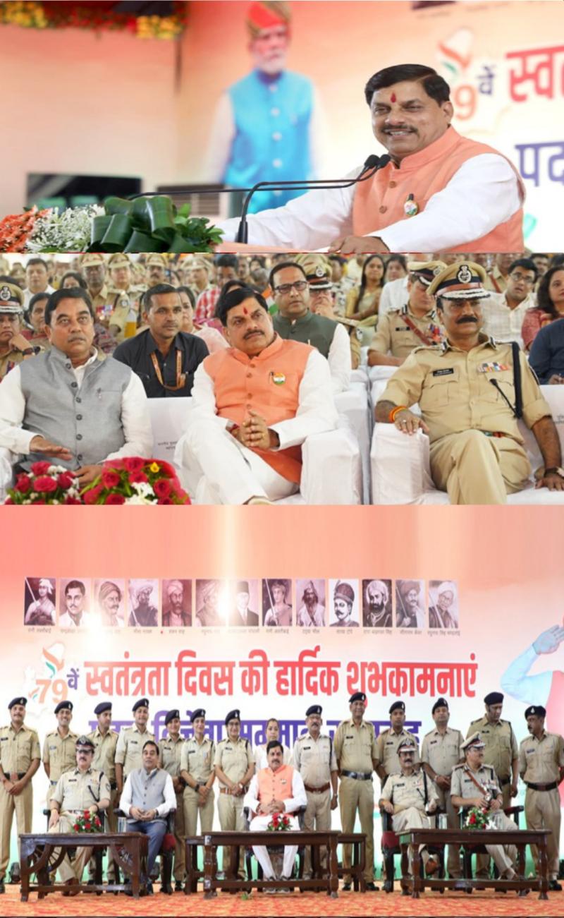 मुख्यमंत्री डॉ. यादव शुक्रवार को मुख्यमंत्री निवास पर स्वतंत्रता दिवस (15 अगस्त) के राज्य स्तरीय समारोह में पदक विजेता अधिकारी-कर्मचारियों के सम्मान समारोह को संबोधित कर रहे थे। मुख्यमंत्री ने पदक पाने वाले पुलिस, जेल एवं नगर सेना एवं नगर सुरक्षा विभाग के सभी अधिकारियों-कर्मचारियों और उनके परिजनों से बेहद आत्मीयतापूर्वक भेंट की और सभी को बधाई देकर उनके उज्ज्वल भविष्य की शुभकामनाए दीं।