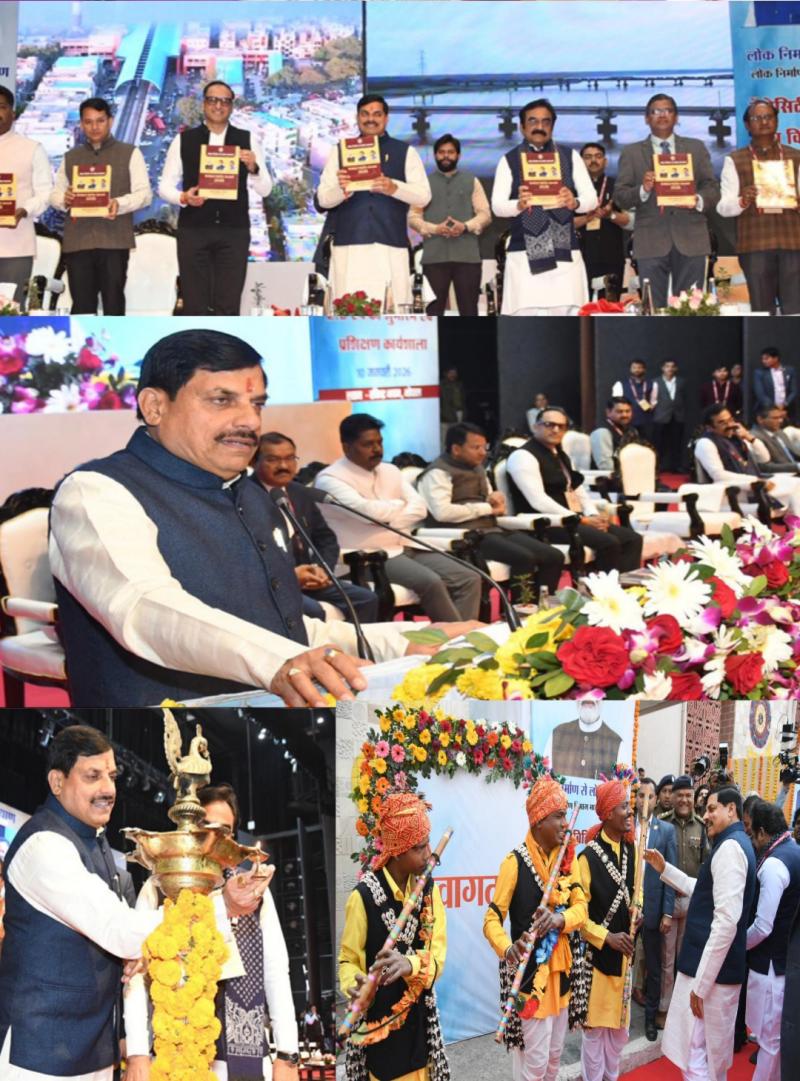 मुख्यमंत्री डॉ. यादव के मुख्य आतिथय में लोक निर्माण से लोक कल्याण की भावना को साकार करने वाले इस कार्यक्रम के आरंभ में वंदे मातरम का सामूहिक गान हुआ। मुख्यमंत्री डॉ. यादव ने दीप प्रज्ज्वलित कर कार्यक्रम का शुभारंभ किया। मुख्यमंत्री डॉ. यादव के कार्यक्रम स्थल आगमन पर जनजातीय कलाकारों द्वारा परम्परागत वाद्य यंत्रों पर मंगल गान के साथ उनका स्वागत किया गया। मुख्यमंत्री डॉ. यादव को अंगवस्त्रम, सम्राट विक्रमादित्य की प्रतिमा तथा तुलसी का पौधा भेंटकर उनका अभिवादन किया गया। मुख्यमंत्री डॉ. यादव ने लोक निर्माण विभाग द्वारा अभियंताओं के प्रशिक्षण, कौशल उन्नयन और आधुनिक परियोजना प्रबंधन में मार्गदर्शन के लिए विकसित कैपेसिटी बिल्डिंग फ्रेमवर्क 2026 का विमोचन, लोकपथ मोबाइल ऐप के उन्नत संस्करण - लोकपथ 2.0 का लोकार्पण किया। यह ऐप सड़क रखरखाव की निगरानी, नागरिक शिकायतों के त्वरित निवारण, रूट प्लानिंग, ब्लैक स्पॉट अलर्ट, आपातकालीन SOS सुविधा तथा सड़क किनारे उपलब्ध सुविधाओं की जानकारी जैसी सेवाओं के माध्यम से नागरिकों को एक समग्र, उपयोगकर्ता-अनुकूल और आधुनिक डिजिटल प्लेटफॉर्म प्रदान करेगा।