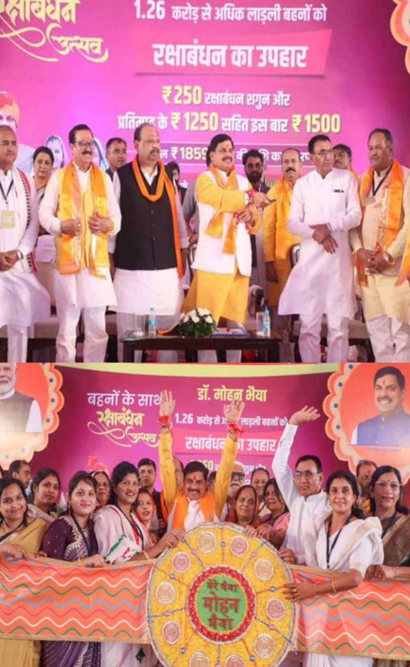 से भर दिया है।” कार्यक्रम में लाड़ली बहनों ने मुख्यमंत्री को वृहद राखी भी भेंट की। इस अवसर पर मुख्यमंत्री डॉ. यादव ने बहनों को झूला भी झुलाया।