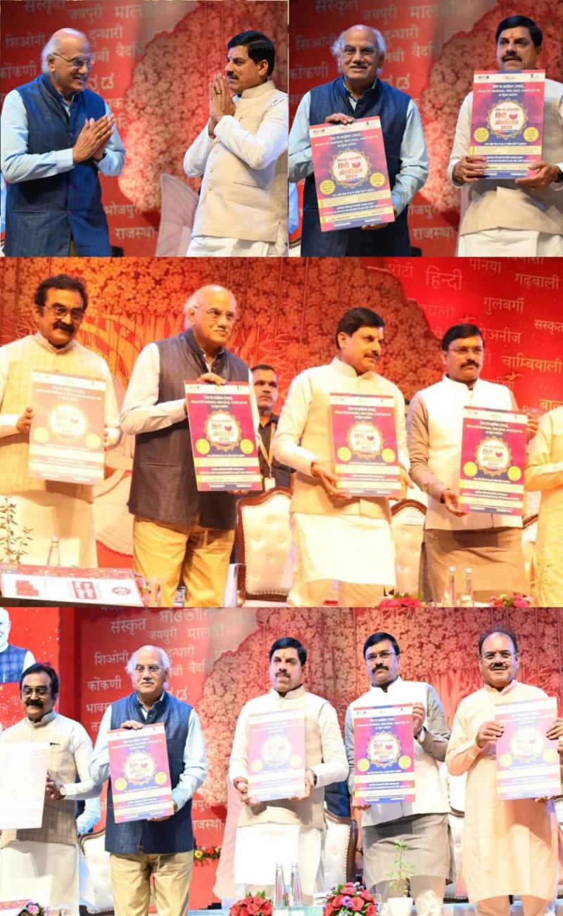 भोपाल। हिंदी भाषा के वैश्विक प्रचार – प्रसार और नई पीढ़ी को हिंदी से जोड़ने के उद्देश्य से विश्व रंग फाउंडेशन (भारत), रबीन्द्रनाथ टैगोर विश्वविद्यालय भोपाल एवं वनमाली सृजन पीठ द्वारा संयुक्त रूप से आयोजित विश्व रंग अंतरराष्ट्रीय हिंदी ओलंपियाड 2025 का भव्य शुभारंभ मध्यप्रदेश के माननीय मुख्यमंत्री डॉ. मोहन यादव ने रवीन्द्र भवन, भोपाल के हंसध्वनि सभागार में संस्कृति विभाग मध्यप्रदेश द्वारा आयोजित 'भारतीय मातृभाषा अनुष्ठान' में समारोह पूर्वक पोस्टर लोकार्पित कर किया। उन्होंने अपने सम्बोधन में कहा कि जैसे माँ के चरणों में चारधाम होते हैं, वैसे ही मातृभाषा की गोद में आनंदधाम होता है। वैश्विक स्तर पर हिंदी भाषा का मान बढ़ रहा हैं। यह हमारे लिये गौरव की बात है।