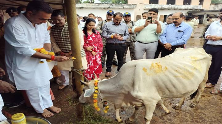 वन राज्यमंत्री ने गौशालाओ में गोवर्धन पूजा एवं गौ पूजा की
