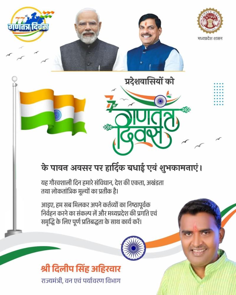 वन राज्यमंत्री श्री अहिरवार ने प्रदेशवासियों को गणतंत्र दिवस पर दी शुभकामनाएं