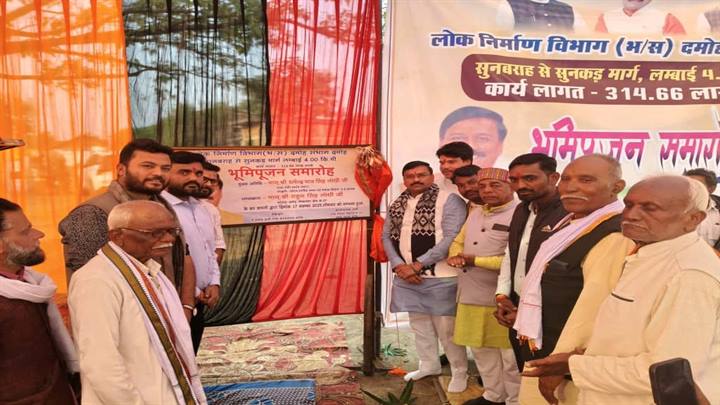 दमोह l संस्कृति, पर्यटन, धर्मस्व एवं धार्मिक न्यास राज्यमंत्री धर्मेंद्र सिंह लोधी ने दमोह जिले की जबेरा विधानसभा क्षेत्र के ग्राम सुनवराह से सुनकड़ मार्ग का भूमिपूजन किया। इस मार्ग का निर्माण कार्य लगभग 4 कि.मी लागत 314.66 लाख रुपये की राशि से किया जायेगा।
