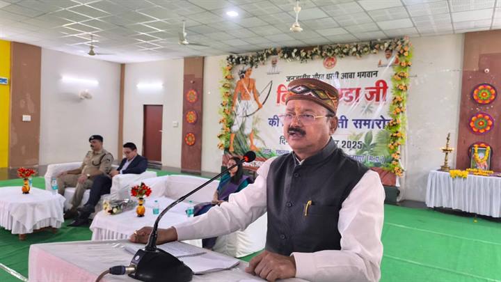 भगवान बिरसा मुंडा के छायाचित्र पर माल्यार्पण कर हुआ समारोह का शुभारंभ