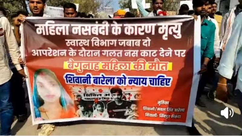 सीहोर - जिले की भेरूंदा के सिंहपुर निवासी शिवानी की नसबंदी आपरेशन के दौरान तबीयत बिगड़ने से हुई मौत के विरोध में आज क्षेत्र के एक दर्जन गांवो से आए आदिवासियों ने कलेक्ट्रेट का घेराव किया ....कलेक्टर कार्यालय परिसर में बैठकर की जमकर नारेबाजी और आरोपियों के विरुद्ध कार्रवाई की मांग की गई ...10 दिवस में दोषी डाक्टर का निलंबन और 1 करोड़ के मुआवजे की मांग और मृतक के एक बच्चे को सर्विस की मांग की गई ...कलेक्टर बालागुरू के . आश्वासन के बाद सहमत हुए आदिवासी ...