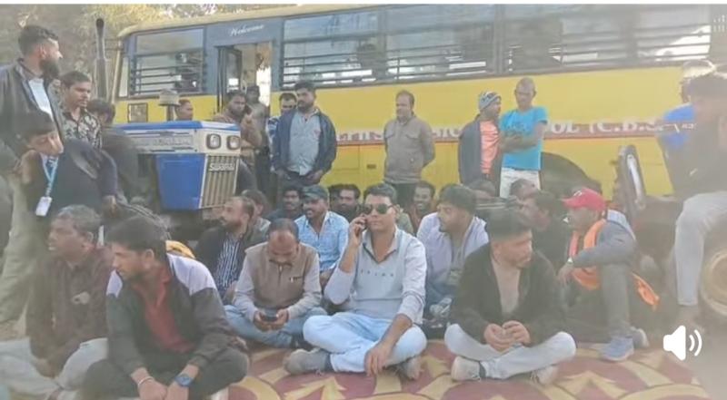 ड्राइवर को बंधक बनाकर बेरहमी से पीटा गया, धरने पर बैठे ग्रामीण