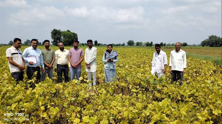 अधिकारियों द्वारा किया जा रहा है सोयाबीन फसल के नुकसान का निरीक्षण