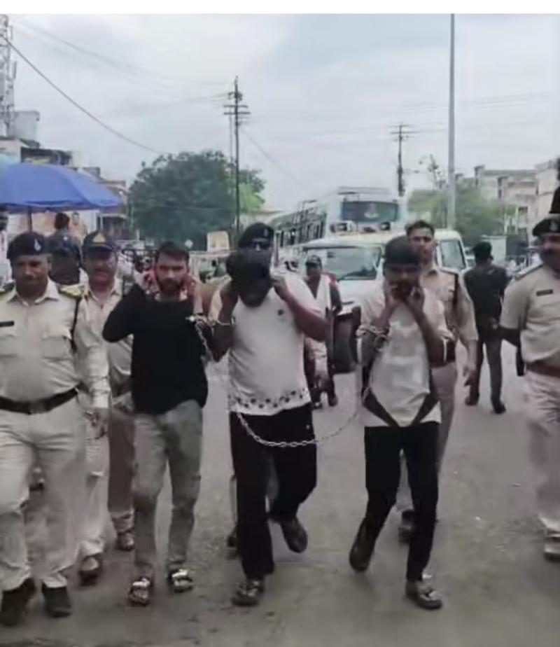 बीच सड़क पर फायरिंग : पुलिस ने निकाला जुलूस लगवाई उठक-बैठक