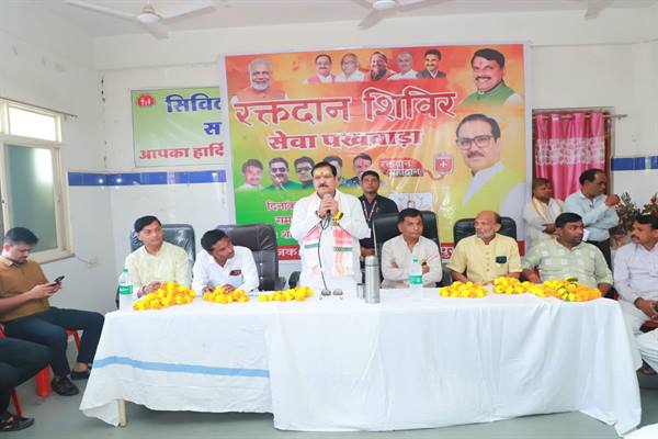 सारंगपुर l कौशल विकास एवं रोजगार राज्य मंत्री (स्वतंत्र प्रभार) श्री गौतम टेटवाल ने शुक्रवार को सारंगपुर के शासकीय अस्पताल में आयोजित रक्तदान शिविर में स्वयं रक्तदान कर मानव सेवा का अमूल्य संदेश दिया। उनके इस कदम ने समाज के बीच यह प्रेरणा दी कि जब जन-प्रतिनिधि स्वयं सेवा कार्यों में अग्रसर होते हैं, तो नागरिक भी उनसे प्रोत्साहित होकर आगे आते हैं।