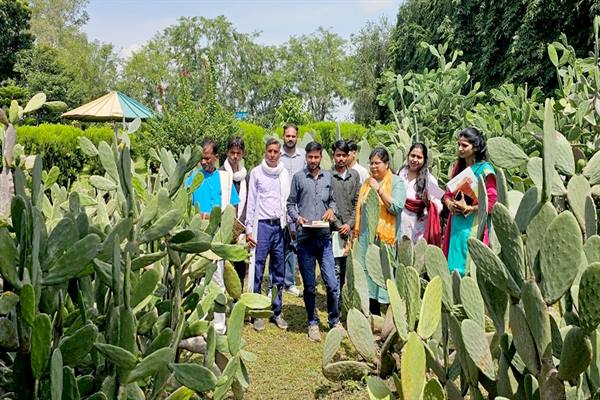 ग्रीन-एजी परियोजना के तहत कांटारहित कैक्टस खेती सीखने अमलाहा पहुँचे किसान